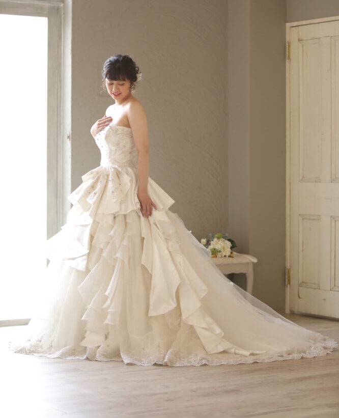 今回ご紹介するドレスはプリンセスラインのウエディングドレスです。
