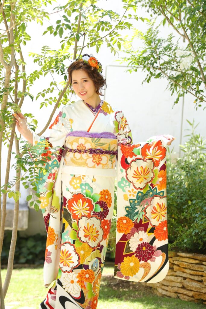 振袖、帯、重ね衿、帯締め、帯揚げ、長襦袢、肌襦袢、足袋、草履、バッグ、ショール、帯板、三重仮紐、腰紐、伊達締め、コーリンベルト、帯枕、衿芯
