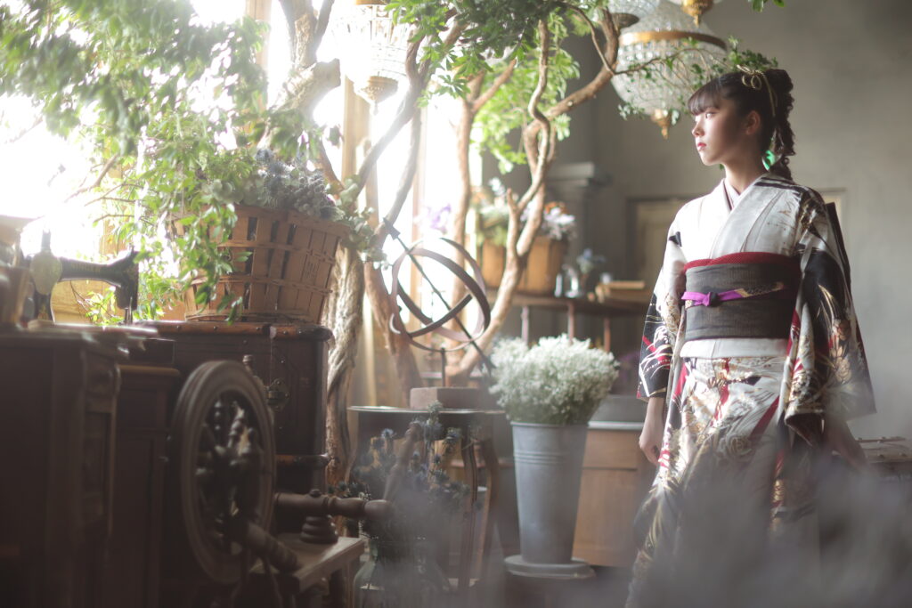 振袖、帯、重ね衿、帯締め、帯揚げ、長襦袢、肌襦袢、足袋、草履、バッグ、ショール、帯板、三重仮紐、腰紐、伊達締め、コーリンベルト、帯枕、衿芯