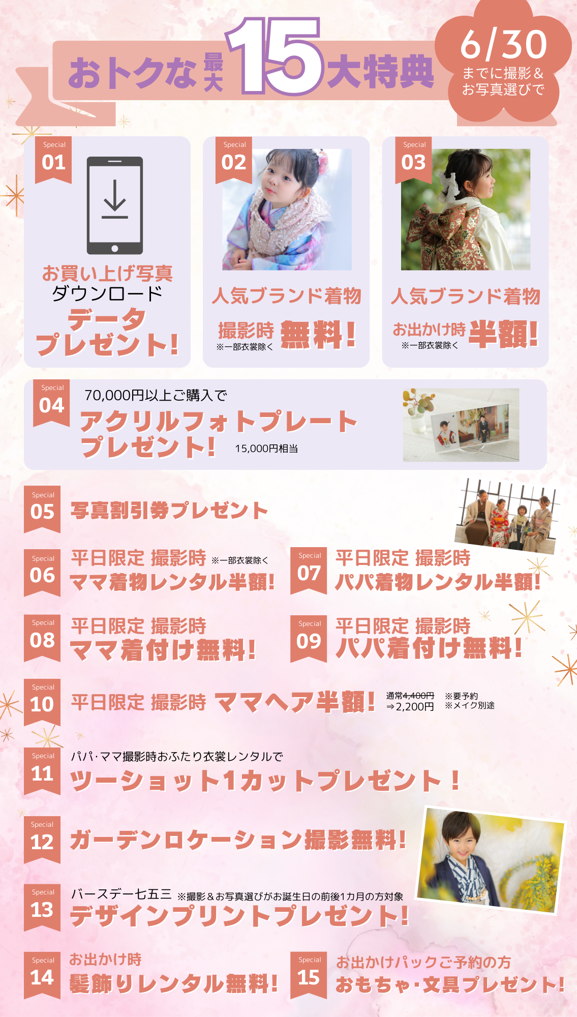 今だけの15大特典や豪華景品が当たる抽選会など…スタートダッシュキャンペーン開催♪