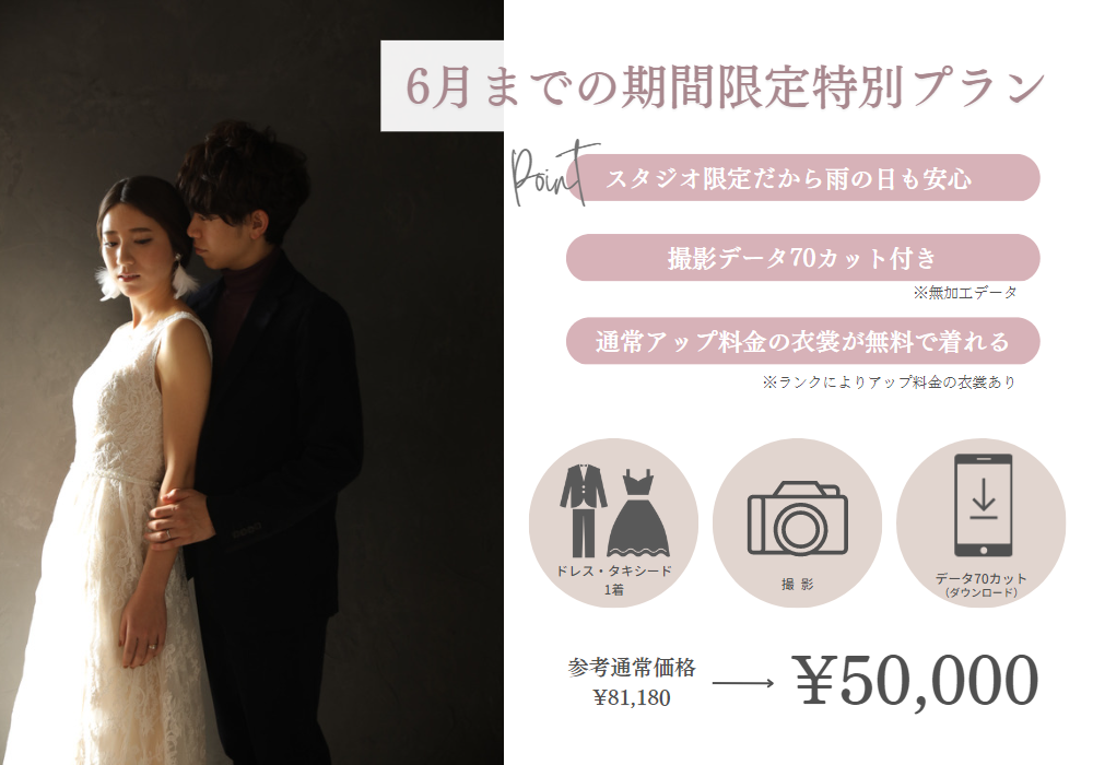 \\6月の平日限定でお得なスタジオウェディングフォトプランが登場♪//