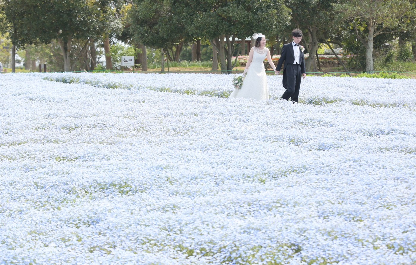 ホワイトベル浜松から20分の場所に位置する花と緑の公園。広場一面の春のネモフィラ、夏のひまわり、秋のコスモスが人気です。その他桜、バラ、紅葉など四季折々の花との撮影が楽しめます。敷地が広いので体力に自信のある方向けです。季節の見ごろの花は公式サイトでも確認できます。