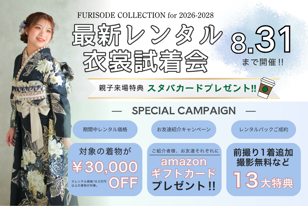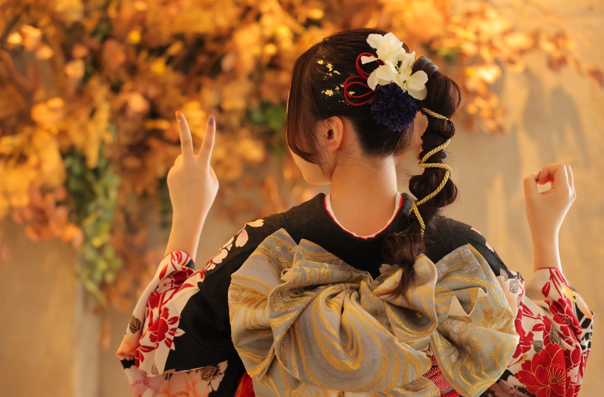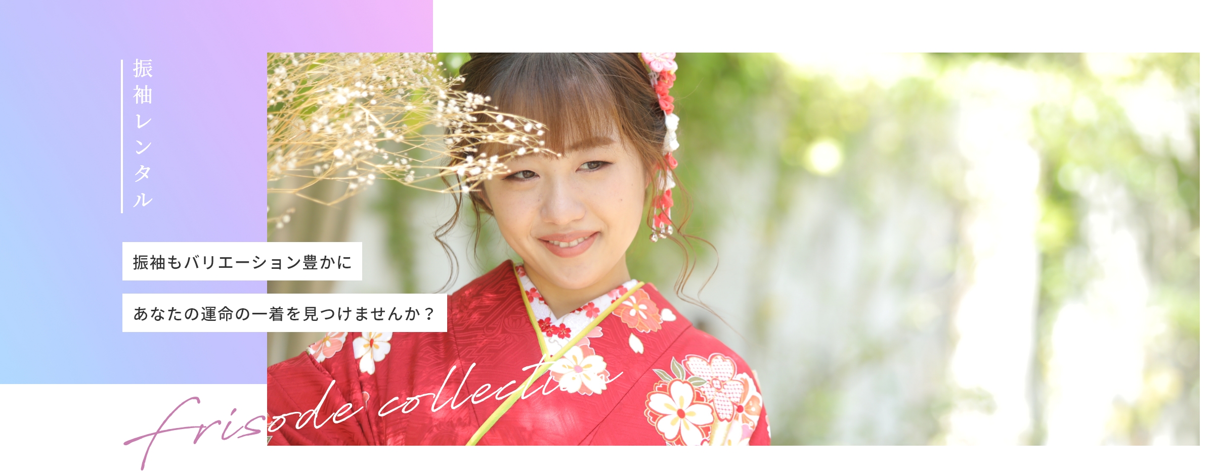 成人の振袖はレンタルもございます。写真撮影だけでなく、大切な人生の節目をお気に入りの着物で彩ります。