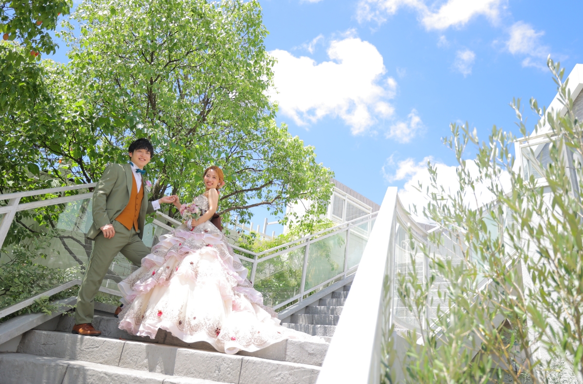 また浜松店ではオリジナルのチャペルや充実したガーデンでお手軽にロケーション撮影も。自然光が降り注ぎグリーンがキラキラと輝く爽やかなガーデンロケーションが大人気。