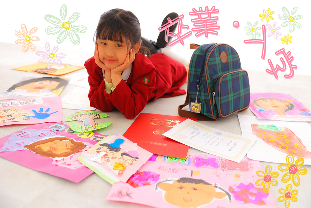 証書や思い出の品を持って卒業記念に、ランドセルや制服姿での入学記念に。