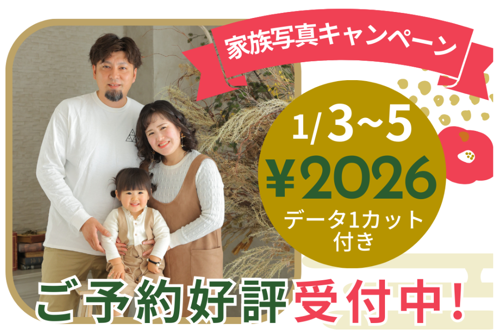 ご家族全員がそろった写真って意外と少ないもの。 節目を祝う記念日など、今を残せる家族写真をたくさん残しておきましょう。