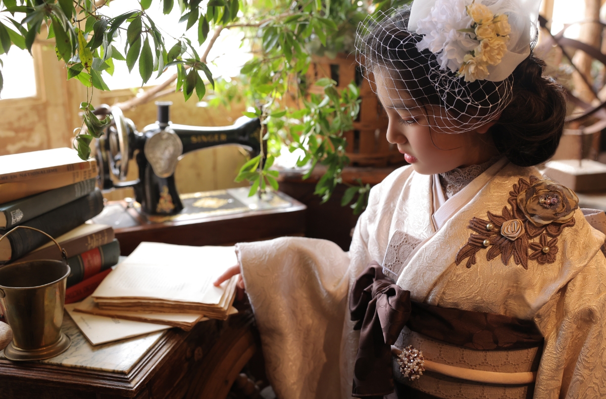 ホワイトベルにはキッズ、アニバーサリー用の衣裳を約500着、ウエディング用の衣裳を約200着のラインナップをご用意しております。和装から洋装まで、また古典柄からイマドキ、個性的な柄など、種類もデザインも数多く取り揃えております。