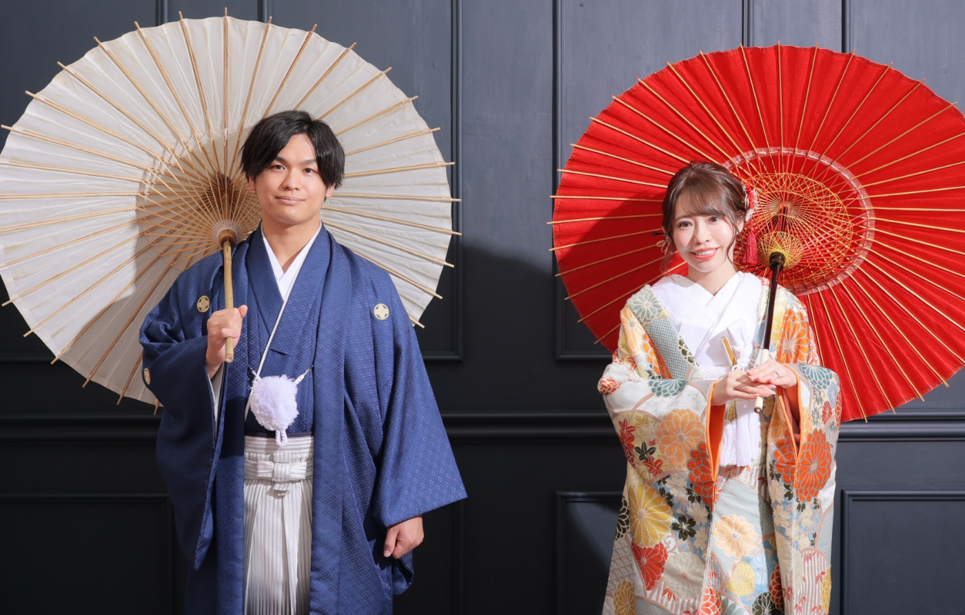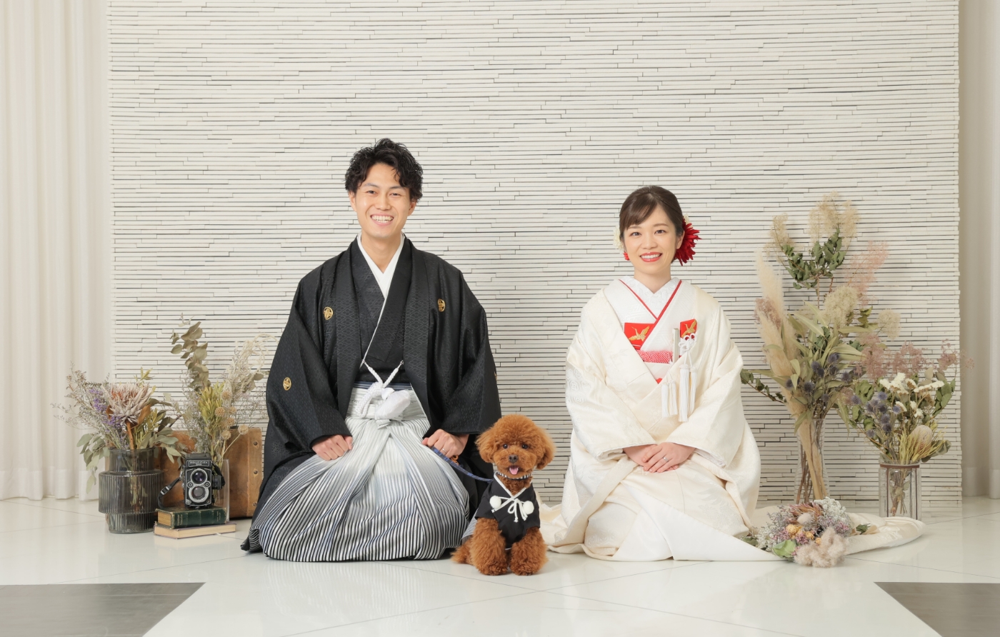 自然光が入る大きな窓とその影を活かしたシックなセットです。和風テイストのスタジオは和装にピッタリ。