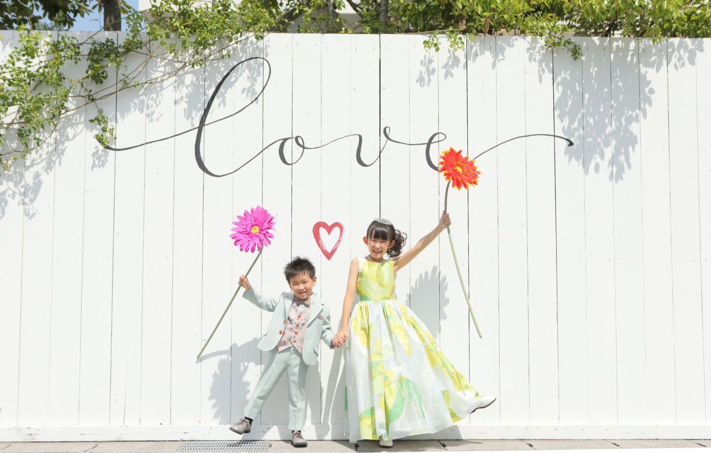 太陽光が目一杯降り注ぐグリーンがキラキラと爽やかなオリジナルガーデンです。メイクルームから徒歩0分。ホワイトベル豊橋の敷地内なので、小さなお子様やファミリー撮影でも楽々ロケーション撮影をお楽しみいただけます。
