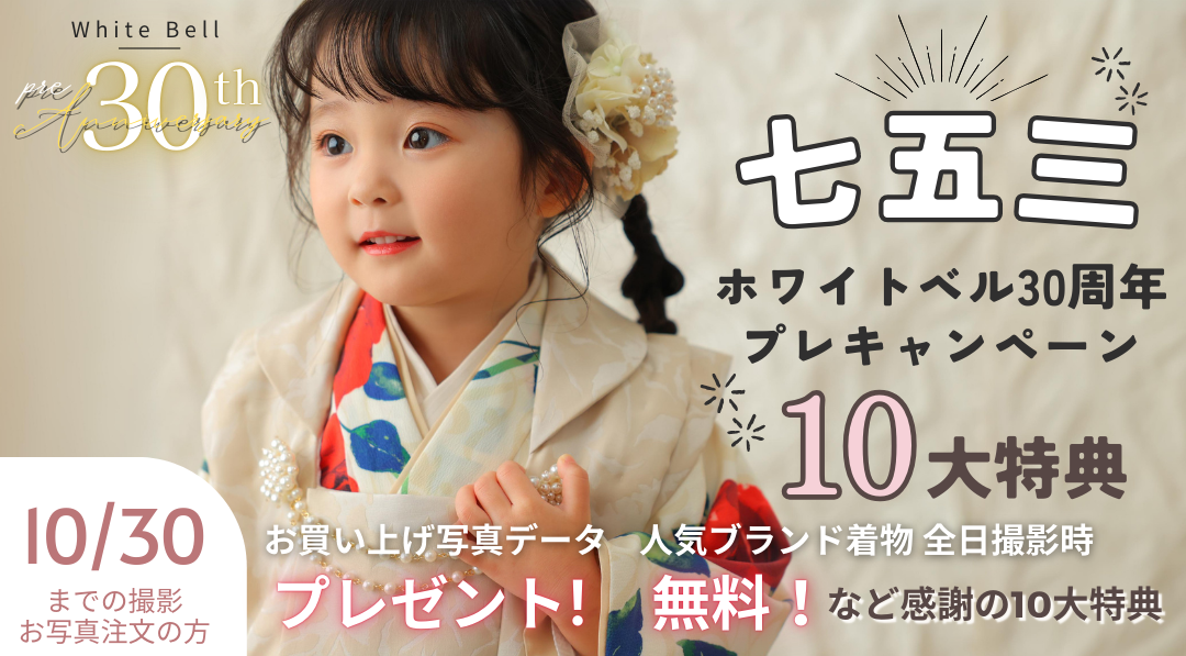 七五三まだ間に合います!ホワイトベル豊橋プレ30周年キャンペーンご好評につき延長決定♪ ご来店はご予約優先です。ご予約のうえご来店ください♪ L……