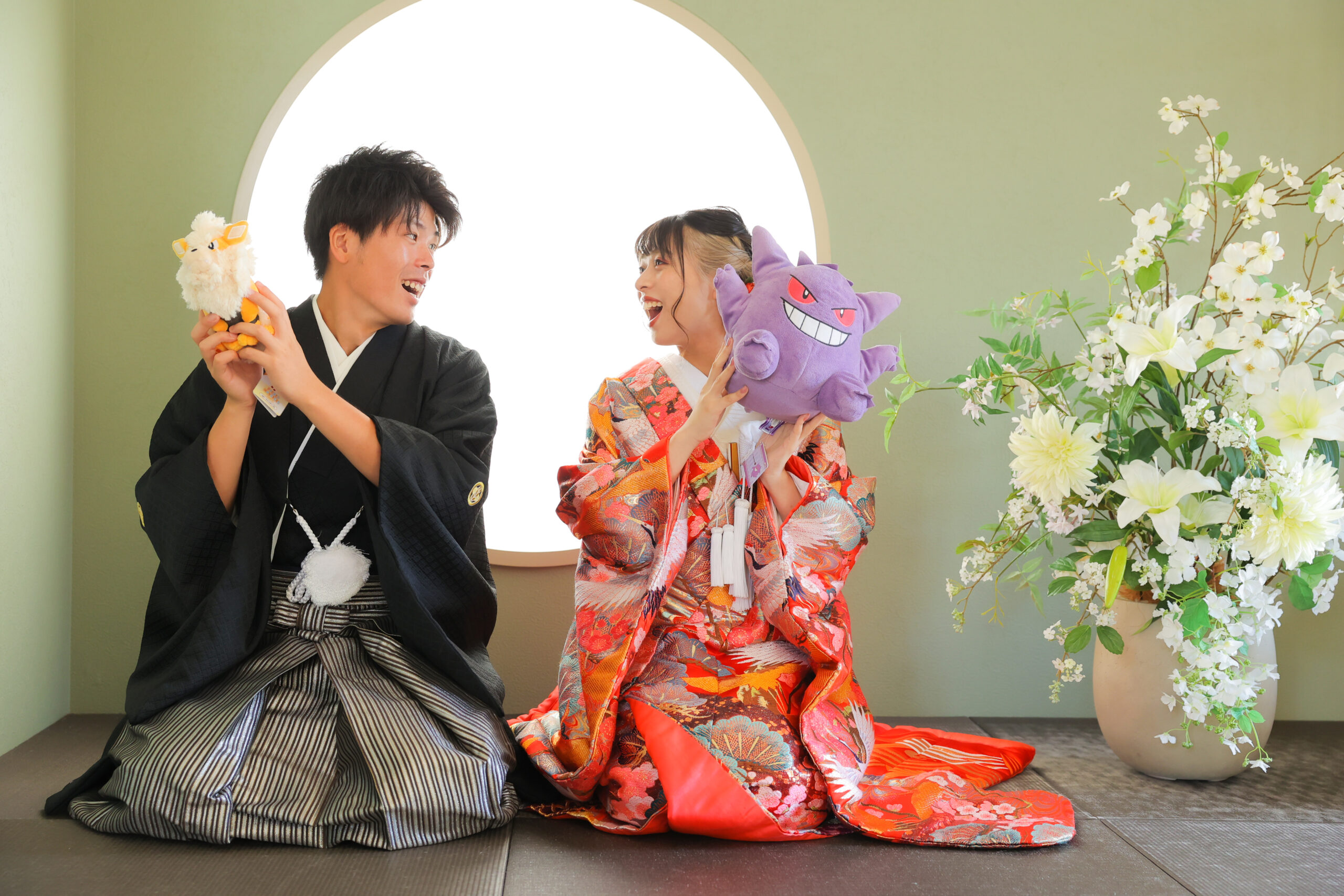ぬいぐるみと一緒に小道具を使ったり、一緒にアクションを取ったりすることで、ユニークで個性的な写真を作ることができます。ぬいぐるみとのコラボレーションでお二人の個性や趣味を反映させ、楽しさと創造性を写真に表現しましょう。