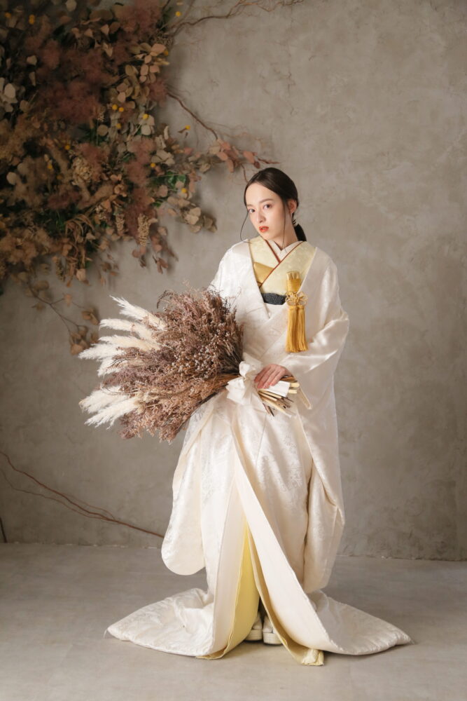 白無垢は、純潔と伝統の美を纏った特別な衣装。伝統と個性、どちらも大切にしながら、自分にぴったりの白無垢を選んでみませんか?