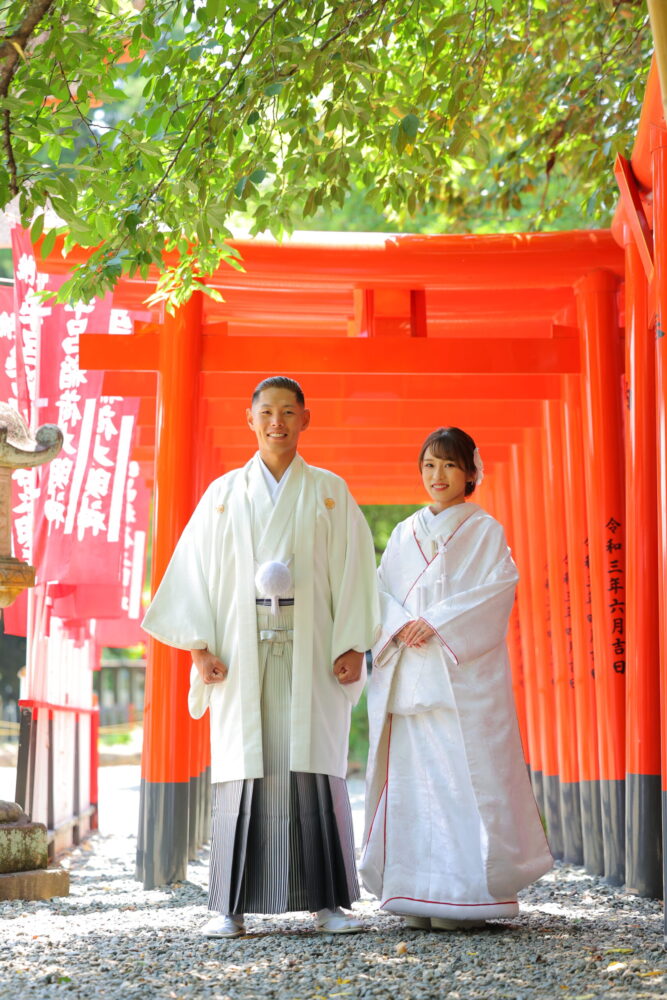 和装撮影で多くのご予約をいただく神社ロケーション。白無垢、色打掛どちらにもぴったり雰囲気が合い、鳥居や灯籠等様々なスポットがあります♪