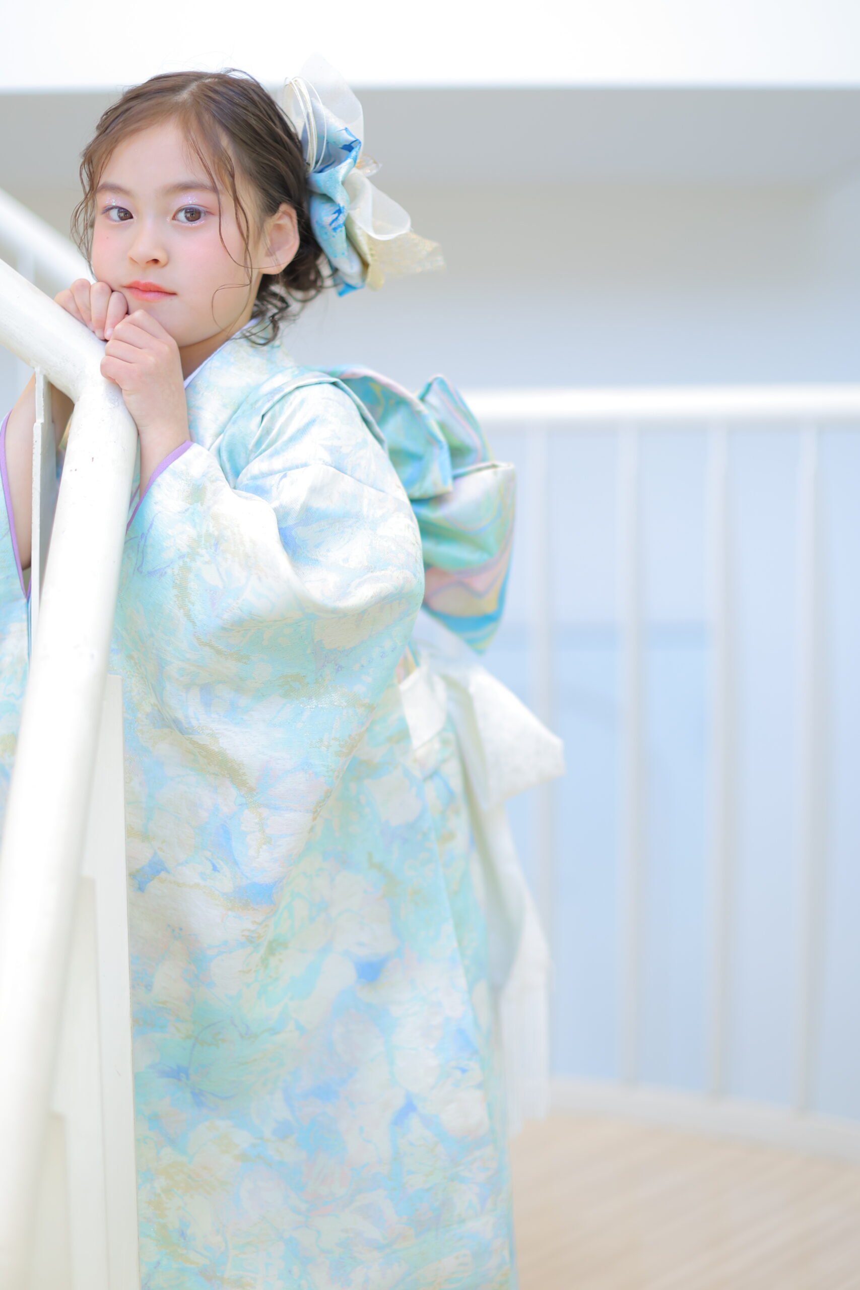「LiliumNena」の7才衣裳は、今人気のくすみブルーを取り入れたトレンド感あふれる一着です。淡く落ち着いた色味が特徴で、派手すぎない上品さと、今どきのナチュラルなおしゃれ感を同時に楽しむことができます。繊細な柄とやわらかな色合いが調和し、お子さまの透明感をより引き立ててくれるのも魅力のひとつ。アンティーク調のスタジオや自然光を活かしたロケーション撮影との相性も良く、写真全体をやさしく柔らかな雰囲気に仕上げてくれます。周りと少し差をつけたい方や、大人っぽく落ち着いた印象にしたい方にぴったりの衣裳で、トレンドを意識した七五三撮影を叶えてくれます。