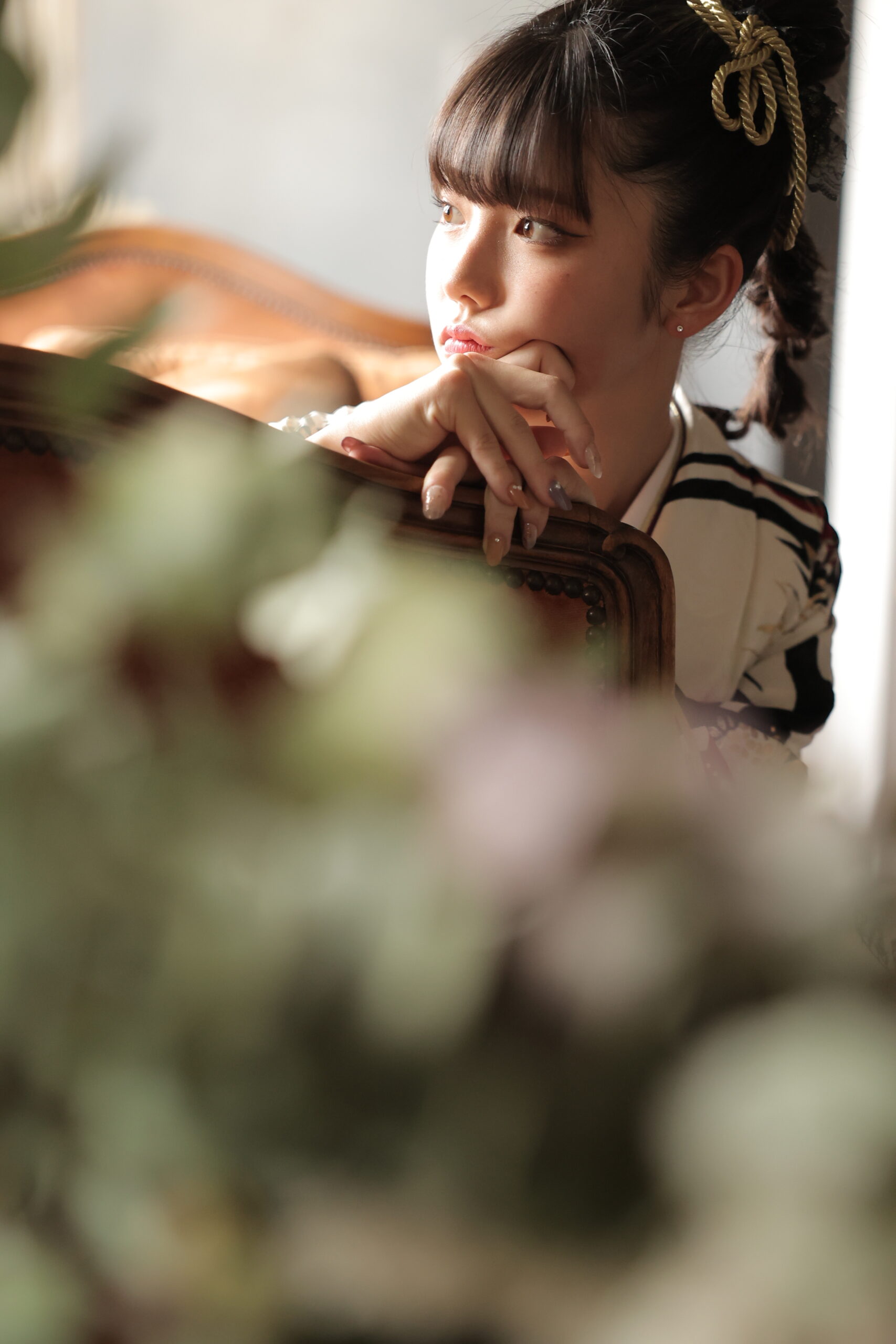 頬杖をついたふとした瞬間を切り取ったようなお写真。カメラを意識した伝統的なものではなく、カメラから視線を外した自然な雰囲気を残したいというリクエストをよくいただきます。このポージングは、自然でリラックスした表情を引き出すのに最適です。カメラを見つめる直接的な視線ではなく、少し視線を外すことで、思慮深い、または夢見るような優しい表情を作り出すことができます。このポーズは、成人としての新しい一歩を踏み出す前の、一瞬の静けさと期待を表現するのにぴったりです。