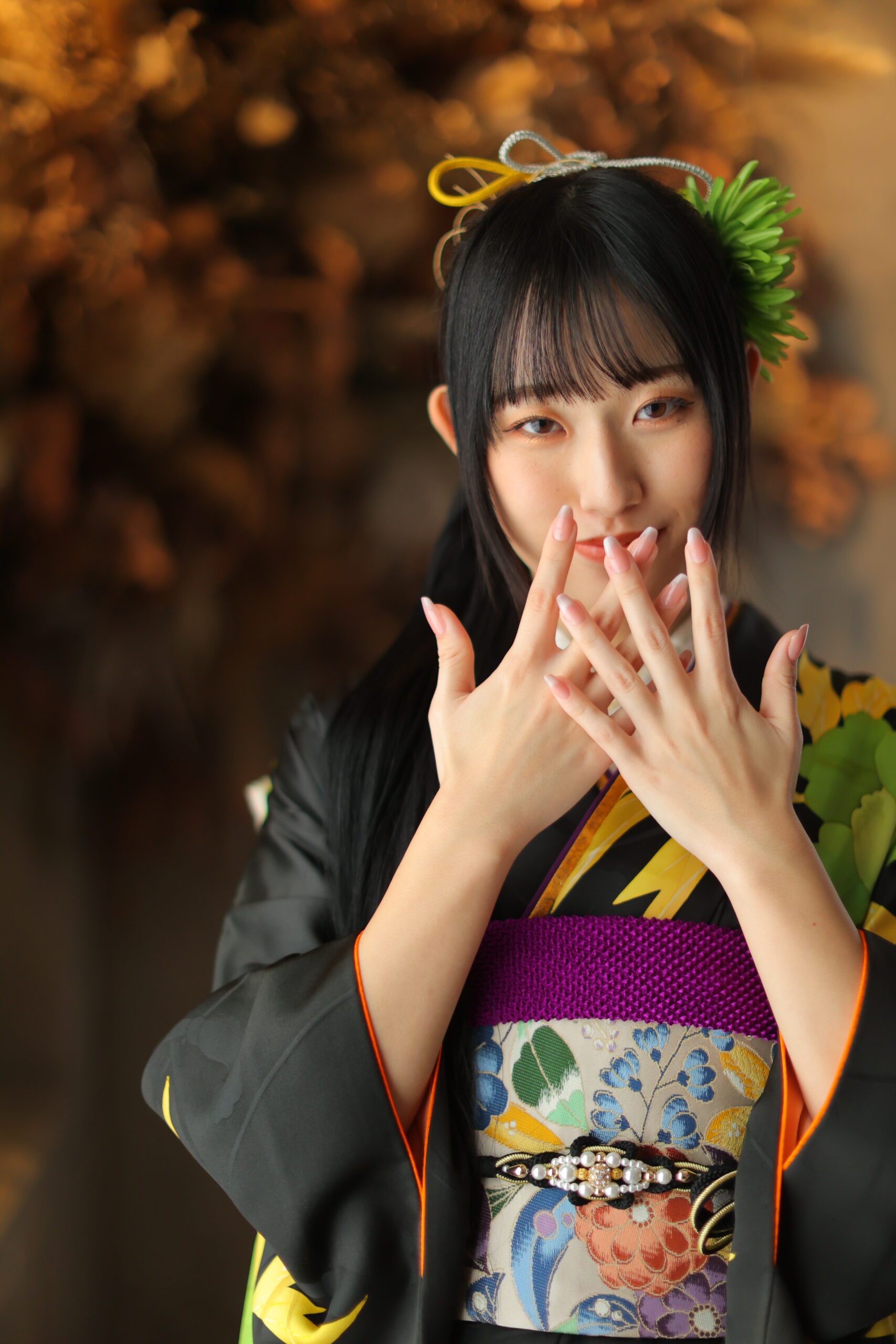 手元の表現で繊細な感情や思いを表現することができます。微笑みとともに手を添えることで、幸せや期待感、内省的な美しさを演出することが可能です。このポーズは、成人としての新しい始まりに対する思いや夢を、控えめながらも力強く伝える手段となります。爪の色だけでも印象はガラッと変わります。控えめに人肌と同じベージュ系や、際立つ黒等の寒色系、明るくハッピーカラーの黄色などの暖色系…お振袖の色味に合わせてもいいですし、ご自身の好みやイメージに合わせても。
