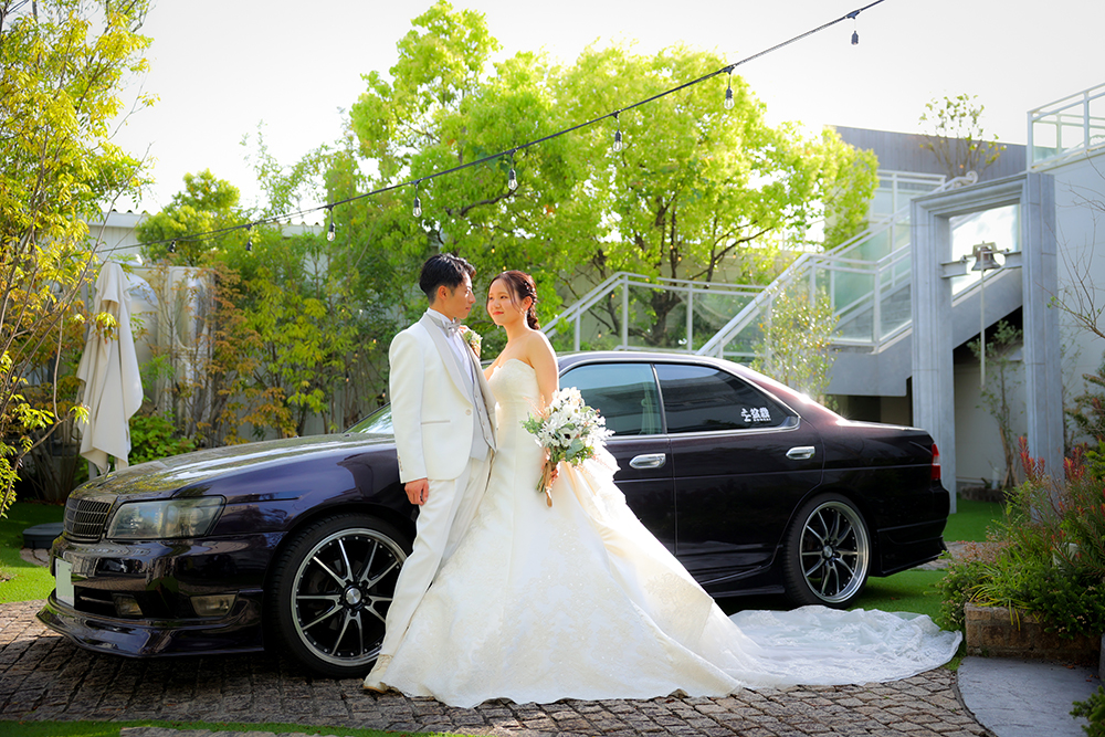 様々な色、形、思い出…色んなこだわりが詰まった愛車との撮影はリクエストをいただく事も多いです(とくに新郎様から!)
