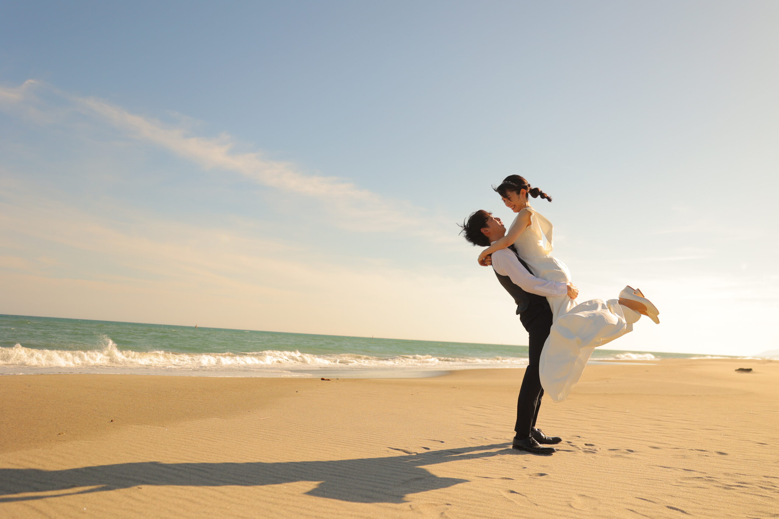 抱っこショットは、ロマンティックな愛情表現だけでなく、楽しさや笑顔も自然に引き出せるため、どんなカップルにもぴったりです。撮影の際には安全を第一にし、リラックスして自然な表情を心がけることが大切です。プロのカメラマンは、ドレスの美しさを引き立てる角度や、光を活かした撮影を駆使し、お二人の幸せな瞬間を最高のかたちで残します。