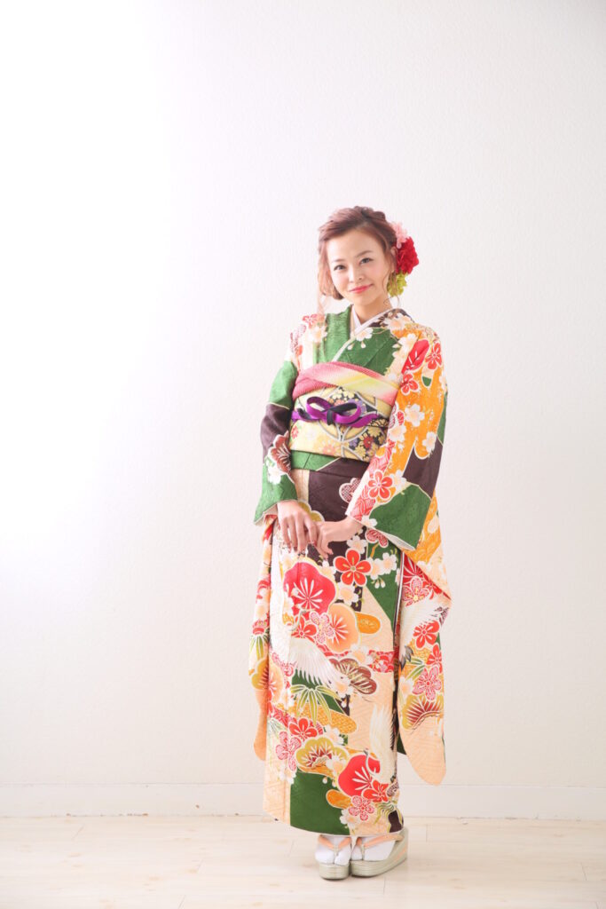 振袖、帯、重ね衿、帯締め、帯揚げ、長襦袢、肌襦袢、足袋、草履、バッグ、ショール、帯板、三重仮紐、腰紐、伊達締め、コーリンベルト、帯枕、衿芯