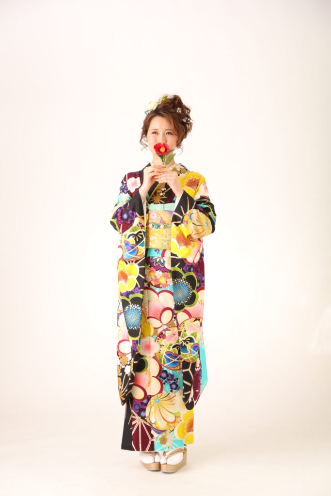 振袖、帯、重ね衿、帯締め、帯揚げ、長襦袢、肌襦袢、足袋、草履、バッグ、ショール、帯板、三重仮紐、腰紐、伊達締め、コーリンベルト、帯枕、衿芯