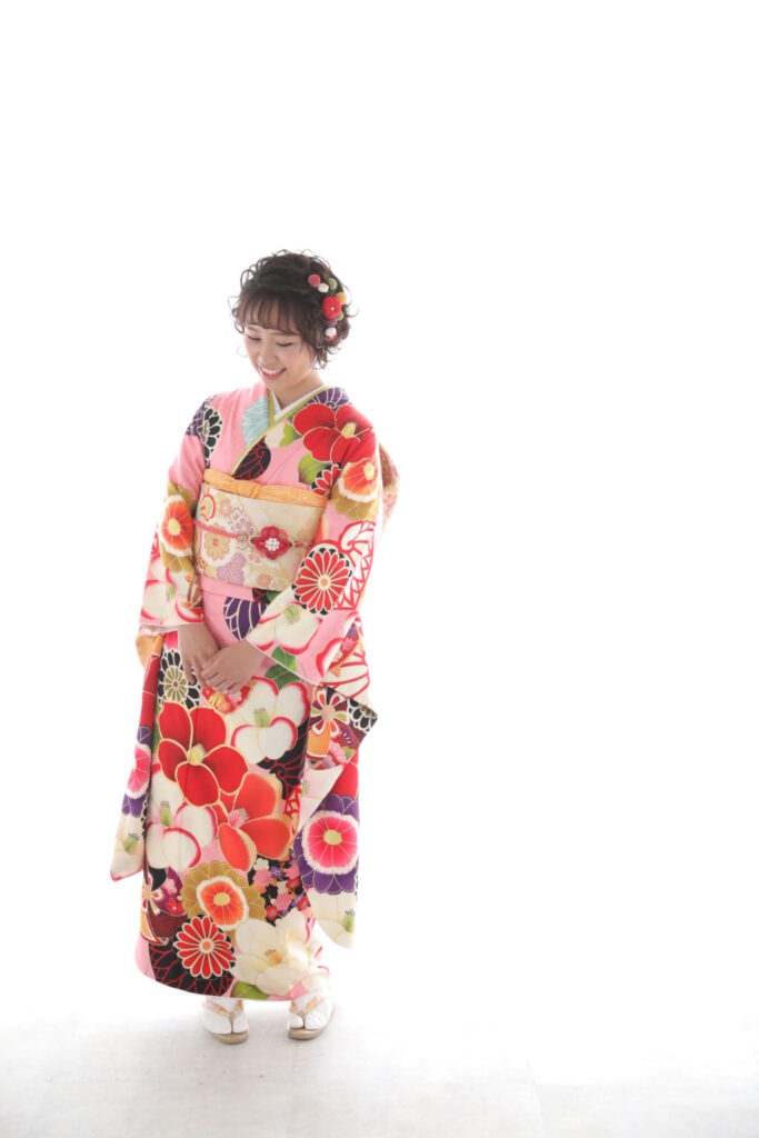 振袖、帯、重ね衿、帯締め、帯揚げ、長襦袢、肌襦袢、足袋、草履、バッグ、ショール、帯板、三重仮紐、腰紐、伊達締め、コーリンベルト、帯枕、衿芯