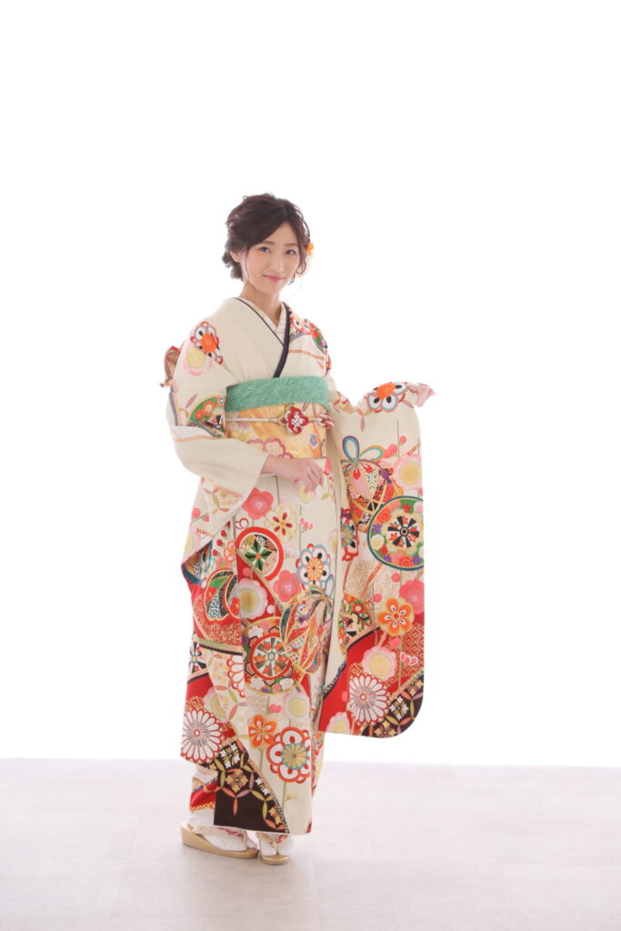 振袖、帯、重ね衿、帯締め、帯揚げ、長襦袢、肌襦袢、足袋、草履、バッグ、ショール、帯板、三重仮紐、腰紐、伊達締め、コーリンベルト、帯枕、衿芯