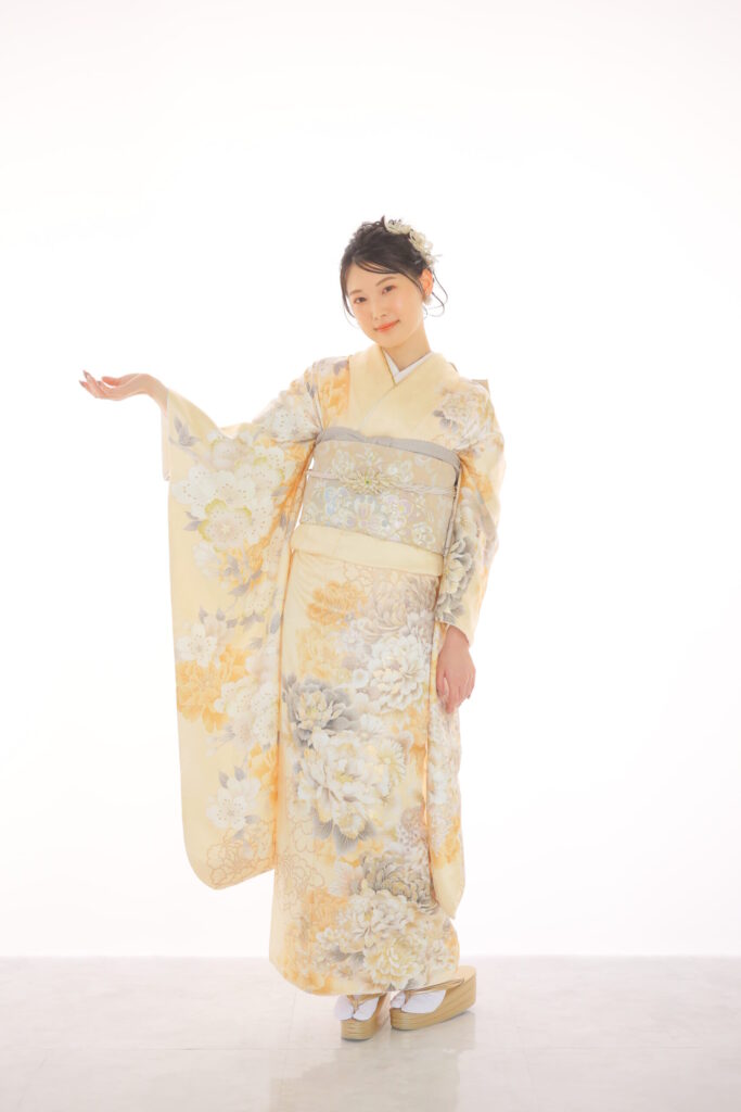 振袖、帯、重ね衿、帯締め、帯揚げ、長襦袢、肌襦袢、足袋、草履、バッグ、ショール、帯板、三重仮紐、腰紐、伊達締め、コーリンベルト、帯枕、衿芯