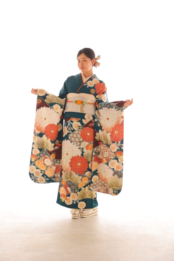 振袖、帯、重ね衿、帯締め、帯揚げ、長襦袢、肌襦袢、足袋、草履、バッグ、ショール、帯板、三重仮紐、腰紐、伊達締め、コーリンベルト、帯枕、衿芯