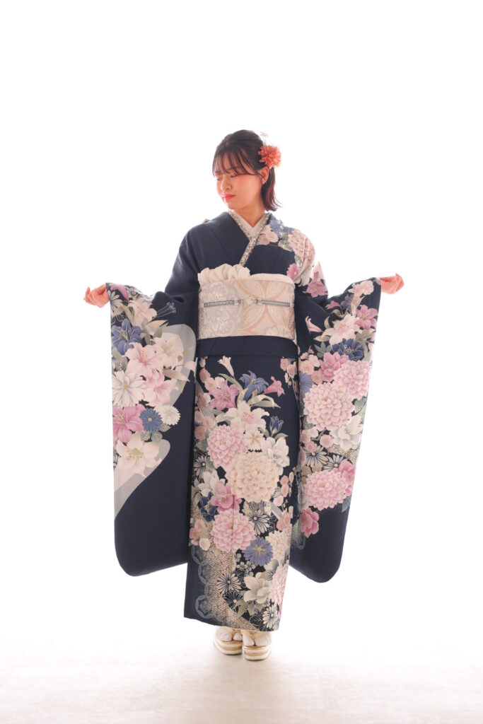 振袖、帯、重ね衿、帯締め、帯揚げ、長襦袢、肌襦袢、足袋、草履、バッグ、ショール、帯板、三重仮紐、腰紐、伊達締め、コーリンベルト、帯枕、衿芯