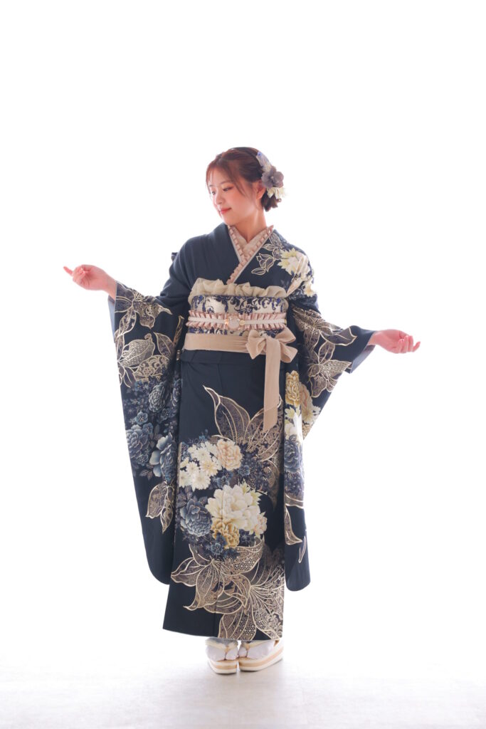 振袖、帯、重ね衿、帯締め、帯揚げ、長襦袢、肌襦袢、足袋、草履、バッグ、ショール、帯板、三重仮紐、腰紐、伊達締め、コーリンベルト、帯枕、衿芯