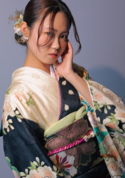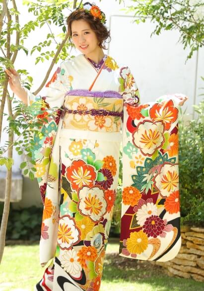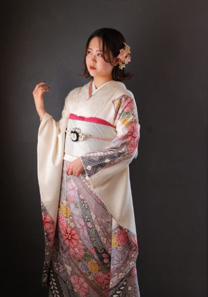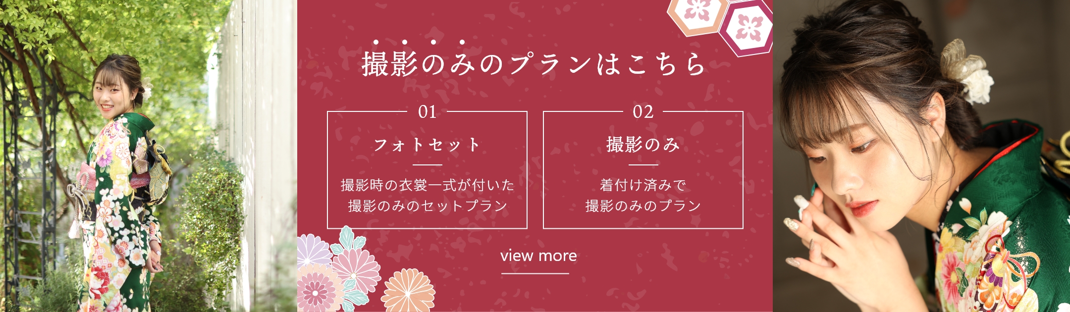 9月末までの前撮りの場合、振袖もう一着かカラードレスをお選びいただき撮影いたします。