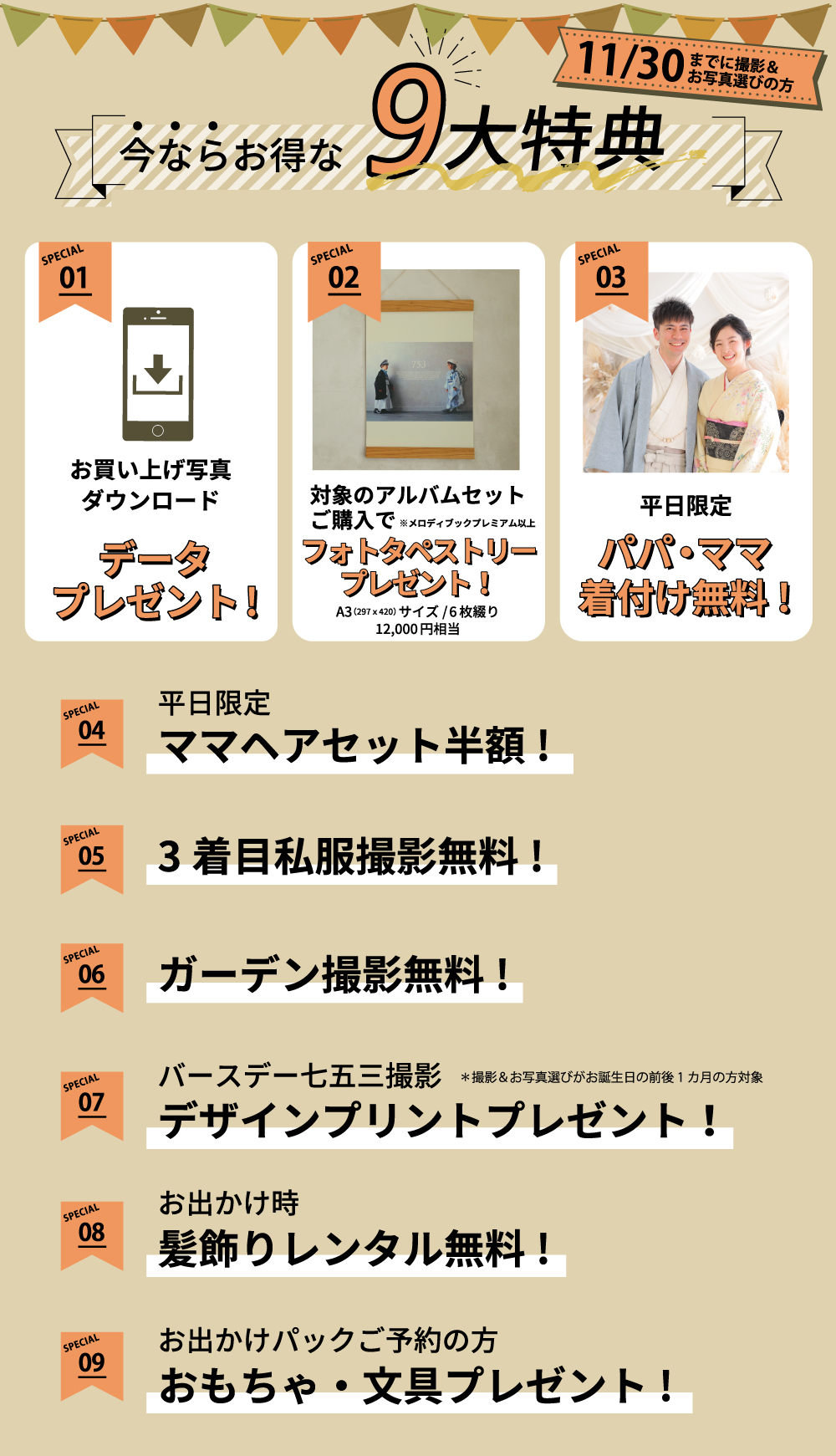 ホワイイトベル豊橋の七五三なら特典がたくさん!シーズン中でも人気のパパママ着付けがお得にできちゃう特典も♪