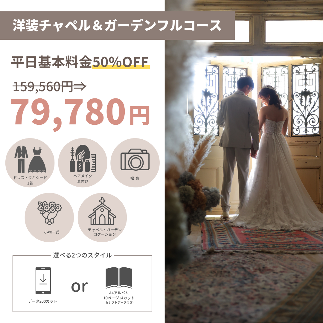 \\ 人気のチャペル&ガーデンロケーションコースが平日限定50%OFF! //