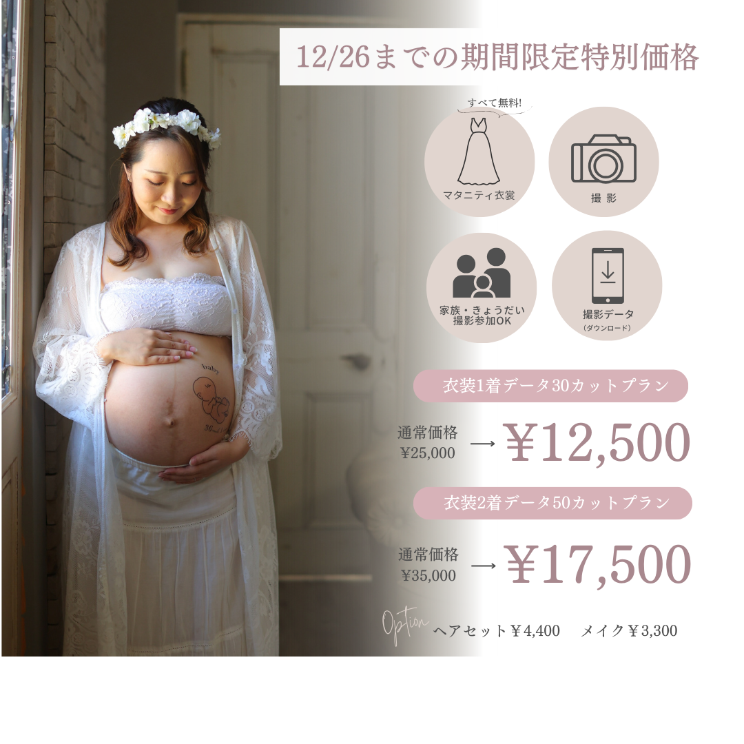【12月末まで】マタニティーフォト データプラン 半額キャンペーン!!