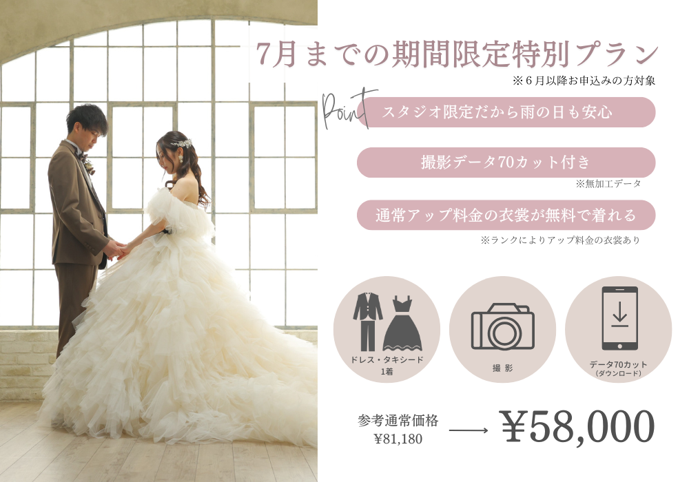 6月7月の平日限定でお得にスタジオウェディングフォトプランが登場!