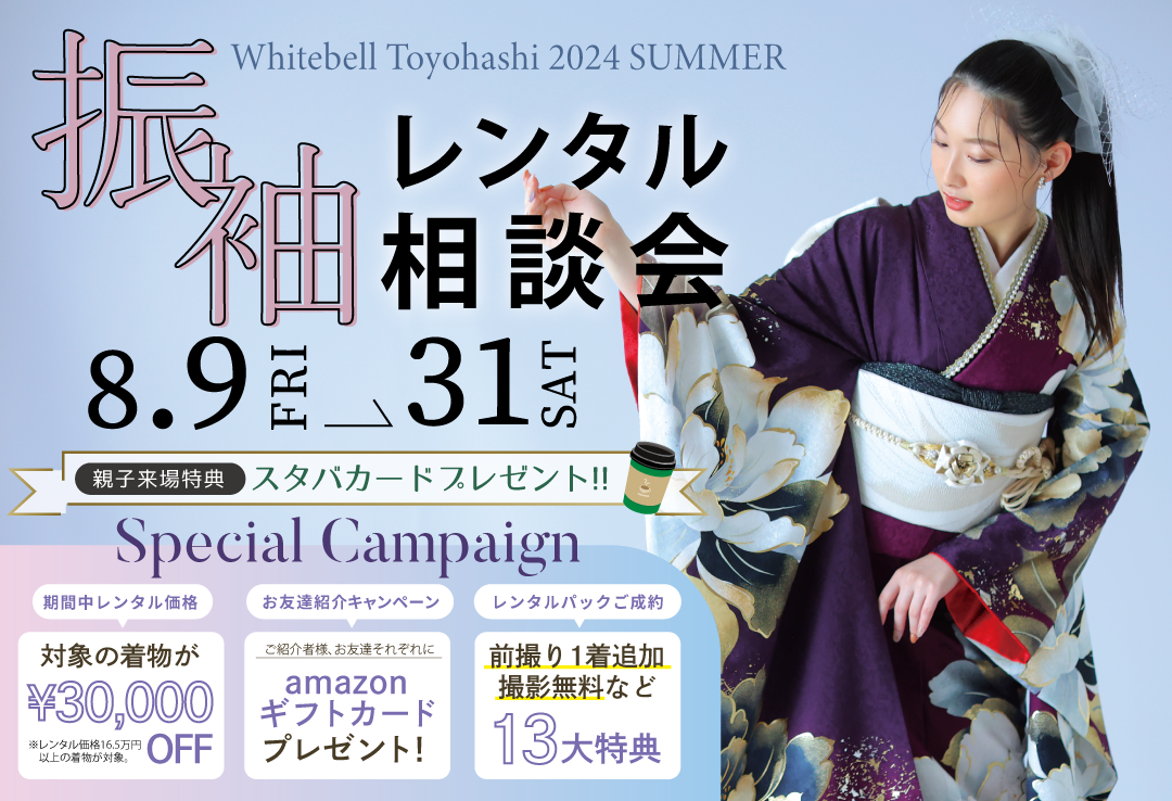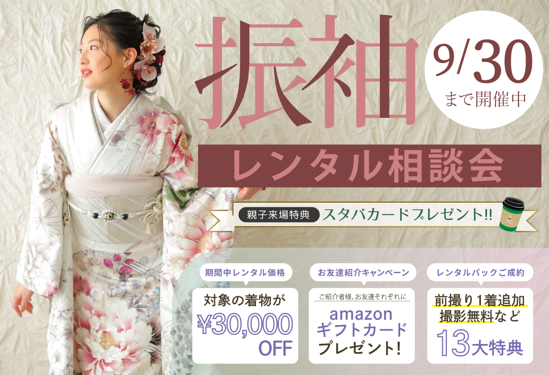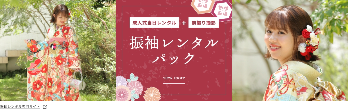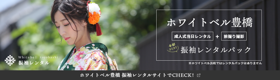 ホワイトベル豊橋にて、前撮りと式典当日の振袖レンタルがセットになったレンタルパックをご用意しております。