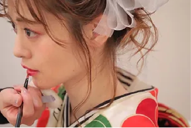 衣裳が決まったらいよいよヘアメイク。お顔の気になるパーツやなりたいイメージもどんどんリクエストしてください。プロのヘアメイクアーティストが最高のあなたをつくりあげます!