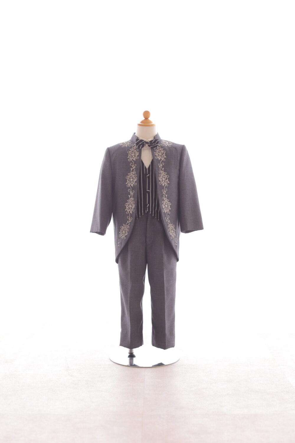 1歳 グレー 刺繍×ストライプ