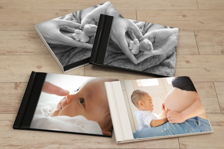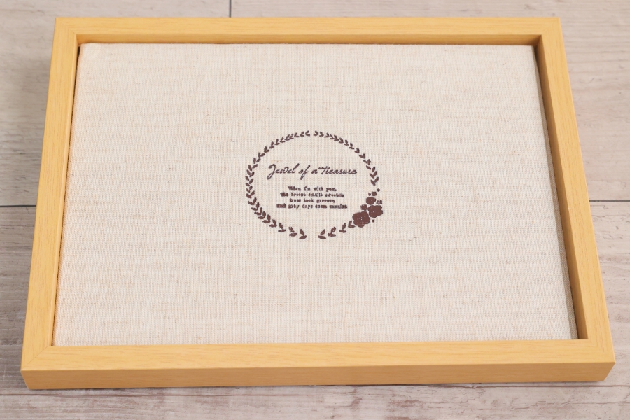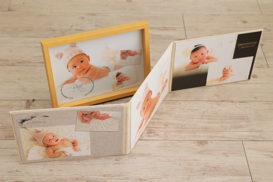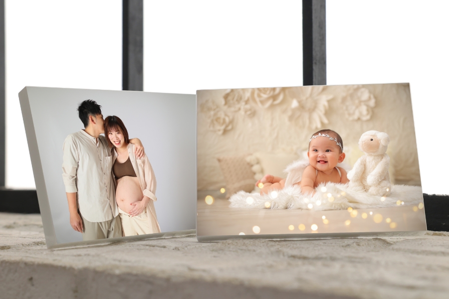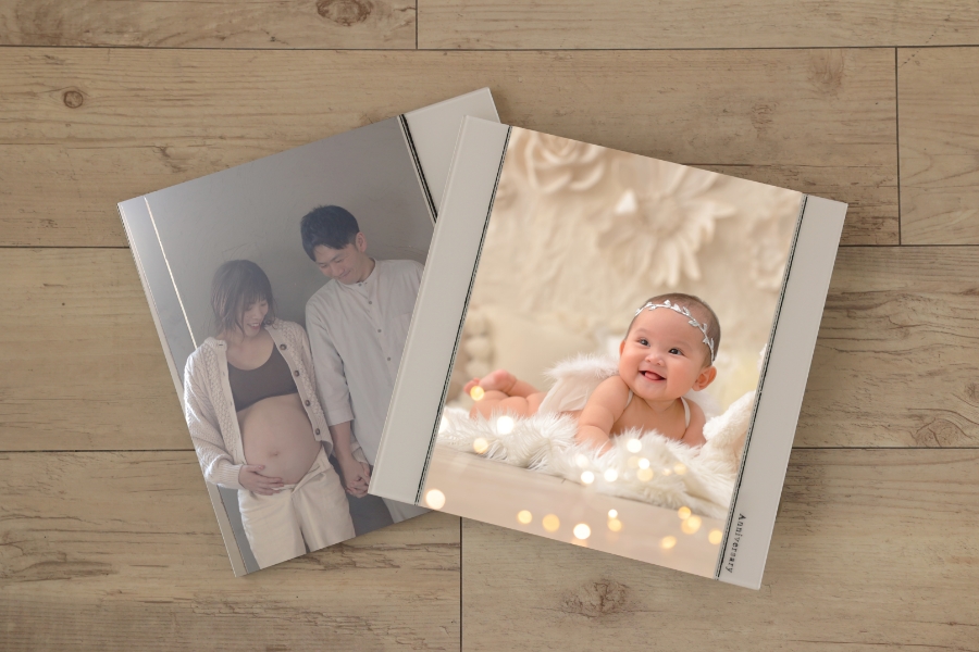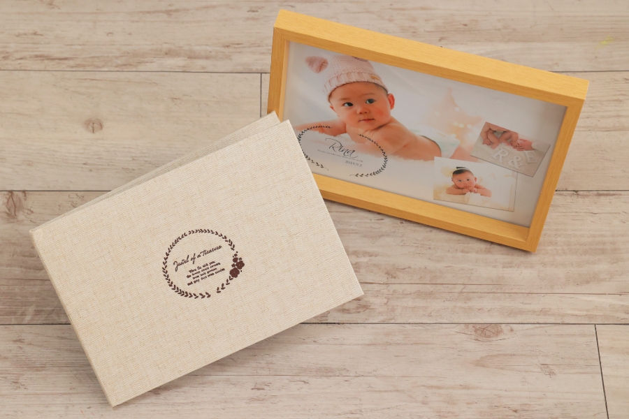美しく高級感のあるアクリル加工の表紙も特徴。収納の箱にも写真が入ります。