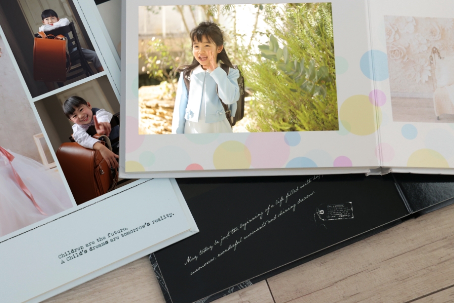 プラスチックケース入りなのでご自宅の本棚にも気軽に収納でき、すぐに取り出してお子様の成長を日々見返していただける、大人気スタンダードデザインアルバムです。