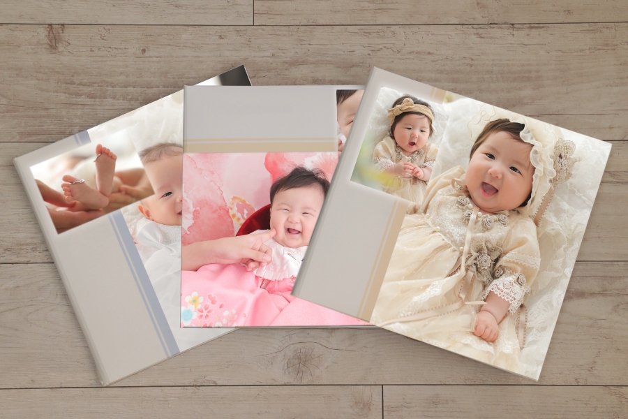 プラスチックケース入りなのでご自宅の本棚にも気軽に収納でき、すぐに取り出してお子様の成長を日々見返していただける、大人気スタンダードデザインアルバムです。