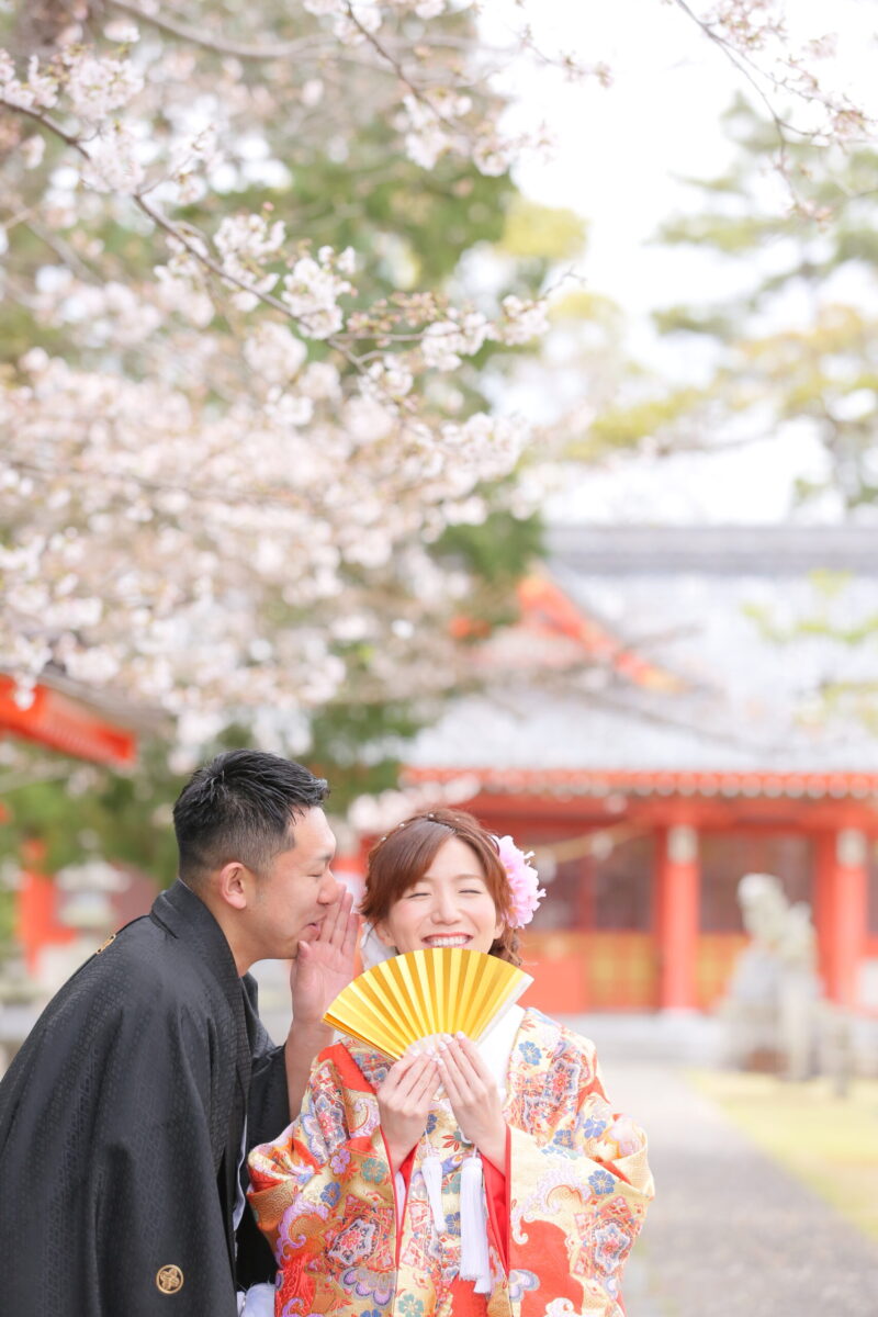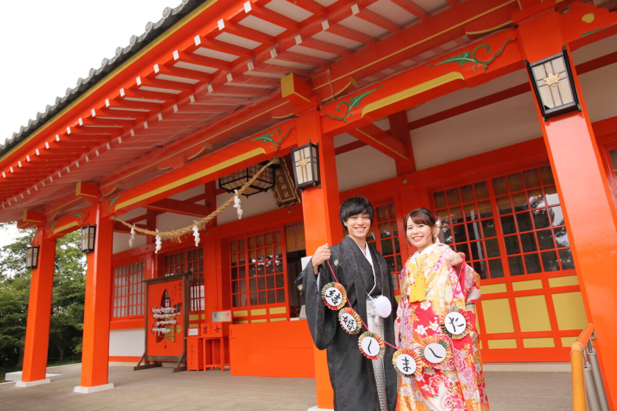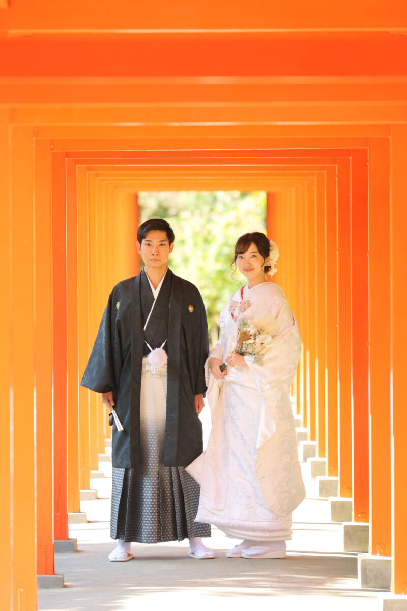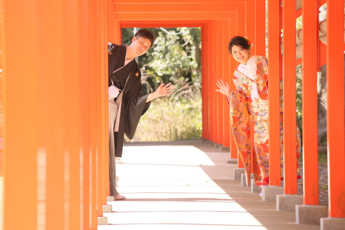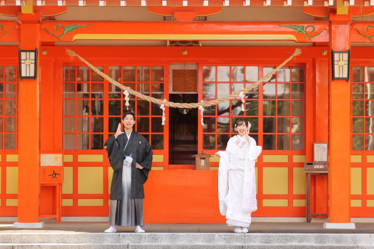 ホワイトベル浜松から20分の場所に位置し、真新しい朱色と深い緑のコントラストがとても美しい神社。特に幾つもの鳥居が連なったような意匠の参道は和装のお二人を囲む額縁のようで大変好評です。町中にひっそりと佇むスポットなので他の方にあまり見られたくない方にもおすすめです。小規模ですが桜と紅葉も楽しめます。