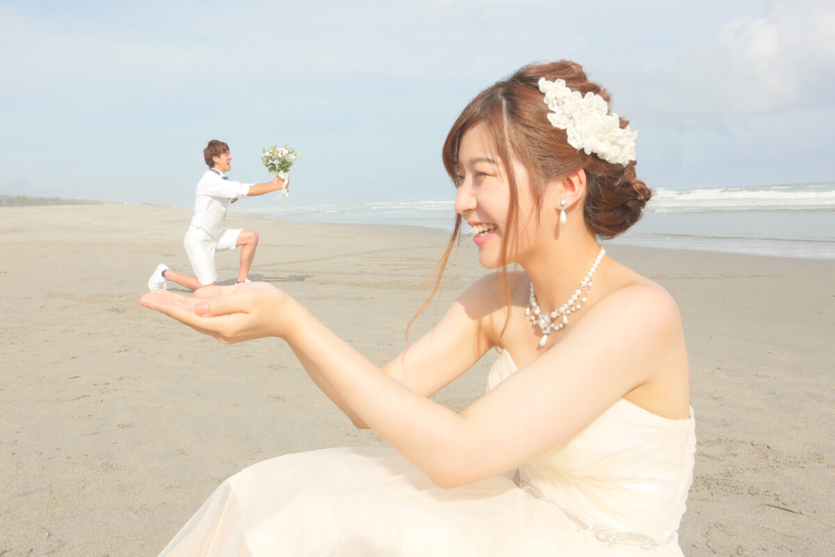 浜名バイパス大倉戸インター下車、ホワイトベル浜松から20分の場所に位置する海岸。太平洋を臨む雄大な自然を背景にする撮影は、海やサーフィンが好きな方はもちろん、リラックスしてのびのび撮影したい方に人気です。風が強く吹く場合がありますので、まとまりやすいヘアスタイルがおすすめです。