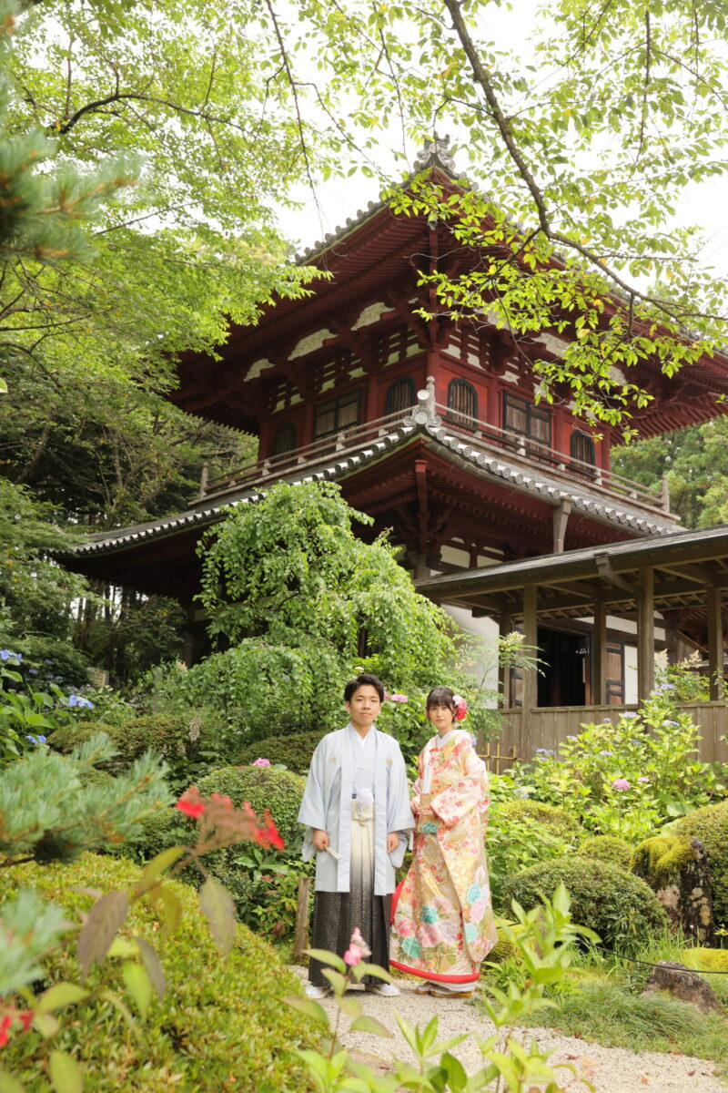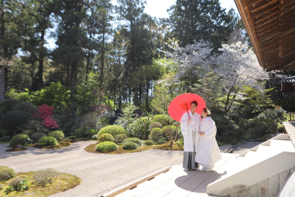 ホワイトベル浜松から40分、大河ドラマ「井伊直虎」の舞台にもなった有名観光地。桜、ツツジ、アジサイ、紅葉など四季折々の花木と立派な庭園が楽しめます。万一の雨でも長い廊下や風情ある縁側などお寺の中に撮影スポットが盛りだくさん。畳敷きの和室での正座ポーズや境内を歩きながらの散歩ポーズが人気。敷地と駐車場が広いのでご親族様の見学もおすすめです。