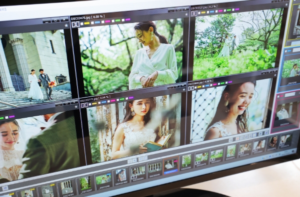 フォトコーディネーターとモニターで確認しながら、写真を自由にセレクトして下さい!たくさんのカットがありますので、フォトコーディネーターのアドバイスをうけながら最適な写真を選びましょう。